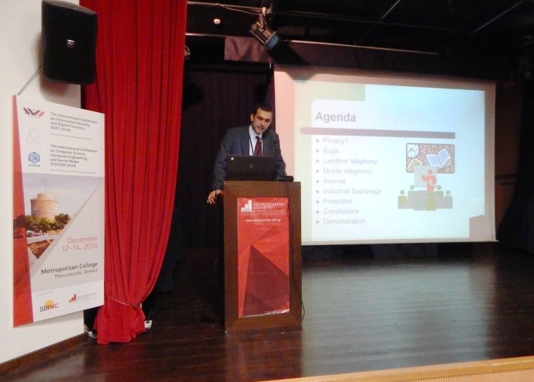 The Faculty of Computing of Metropolitan College Thessaloniki, in cooperation with The Society of Digital Information and Wireless Communications (SDIWC) organized The International Conference in Information Security and Digital Forensics (ISDF 2014) and the International Conference in Computer Science, Computer Engineering, and Social Media (CSCESM 2014) held in Thessaloniki, Greece, on December 12-14, 2014 at the College’s main lecture hall with the participation of speakers from 19 countries (including USA, UK, Japan, S.Korea, Spain, Finland, Germany, Brazil and Norway).