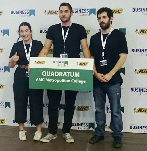 Η ομάδα “Quadratum” του Τμήματος Διοίκησης Επιχειρήσεων και Οικονομικών του Μητροπολιτικού Κολλεγίου επέδειξε εξαιρετικές επιδόσεις στον διαγωνισμό BUSINESS TALENTS GREECE για δεύτερη συνεχή χρονιά!Πιο συγκεκριμένα, η ομάδα κατάφερε να περάσει στον Τελικό του διαγωνισμού, ο οποίος πραγματοποιήθηκε την Παρασκευή 3 Ιουνίου 2016. Ήταν μια από τις 75 ομάδες και ένα εκ των δύο μοναδικών ιδιωτικών κολλεγίων που διαγωνίστηκαν στον τελικό, βάση της κατάταξής τους. Αξίζει να σημειωθεί ότι φέτος ο ανταγωνισμός ήταν πολύ μεγάλος, καθώς στην τελική πανελλαδική κατάταξη συμμετείχαν 814 ομάδες / 2.792 συμμετέχοντες από δημόσια και ιδιωτικά εκπαιδευτικά ιδρύματα όλης της χώρας.Συγχαίρουμε θερμά τους φοιτητές μας Χρήσιμου Κωνσταντίνα, Λαλά Γιώργο και Δάνδολο Δημήτρη-Ορφέα, οι οποίοι επέδειξαν θερμό ζήλο και αξιοποίησαν στον μέγιστο βαθμό τις γνώσεις που έχουν λάβει από τις σπουδές τους στο Μητροπολιτικό Κολλέγιο.