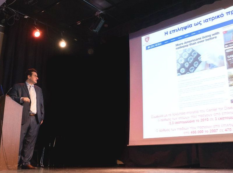 «Η επιληψία και η εγκεφαλική παράλυση είναι δύο από τις πιο συχνές μορφές νευρολογικών παθήσεων σε παιδιατρικούς ασθενείς. Ένα στα τρία παιδιά με επιληψία αδυνατούν να αντιμετωπίσουν αποτελεσματικά τις επιληπτικές του κρίσεις με τη συμβατική φαρμακευτική αγωγή. Για τους ασθενείς αυτούς, η χειρουργική επέμβαση στον εγκέφαλο αποτελεί την πιο αποτελεσματική θεραπεία με ποσοστό επιτυχίας που αγγίζει το 60%. Η χειρουργική αντιμετώπιση της επιληψίας απαιτεί να αναγνωρίσουμε την πηγή της επιληψίας αρχικά με μη επεμβατικά μέσα και αργότερα με επεμβατικές ηλεκτροεγκεφαλικές καταγραφές από τον εγκέφαλο τους ασθενούς», ανέφερε ο Δρ. Παπαδελής στη διάρκεια της ομιλίας του.Παρουσία δεκάδων φοιτητών και επαγγελματιών της Θεσσαλονίκης, ο Δρ.Παπαδέλης περιέγραψε τη χρήση της παιδικής μαγνητοεγκεφαλογραφίας και ηλεκτροεγκεφαλογραφίας υψηλής ανάλυσης για τον εντοπισμό αυτών των πηγών. Επιπλέον, παρουσίασε τη χρήση των παραπάνω μεθόδων για τη χαρτογράφηση των διαφόρων περιοχών του εγκεφάλου σε παιδιά με εγκεφαλική παράλυση πριν ή μετά από θεραπευτική αποκατάσταση. Καταλήγοντας, ανέφερε: «Οι νευροαπεικονιστικές μέθοδοι μπορούν να δώσουν ελπίδα σε χιλιάδες παιδιά με επιληψία για την οριστική θεραπεία των επιληπτικών τους κρίσεων και για την παρακολούθηση της πορείας της θεραπευτικής αποκατάστασης των παιδιών με εγκεφαλική παράλυση».