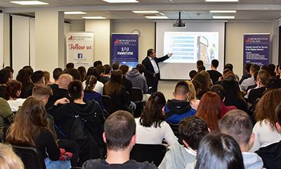 Η Ναυτική Ακαδημία του Μητροπολιτικού Κολλεγίου εγκαινίασε με τεράστια επιτυχία τον θεσμό “Shipping Leaders in Residence” για ακόμα ένα ακαδημαϊκό έτος (2019-2020), φιλοξενώντας μία ηγετική φυσιογνωμία του κλάδου της Ναυτιλίας.Στο πλαίσιο του θεσμού, το Campus Πειραιά του Μητροπολιτικού Κολλεγίου υποδέχτηκε τον Vice President Technology & Business Development Hellenic-BS-ME Zone, Bureau Veritas, κ. Κοκαράκη Ιωάννη ο οποίος έδωσε διάλεξη με θέμα “2020: Shipping at the start of the pathway towards Enviromental Sustainability” στο κατάμεστο αφμιθέατρο του Campus Πειραιά. Στη διάρκεια της διάλεξής του, την οποία παρακολούθησαν φοιτητές της Ναυτικής Ακαδημίας και των προγραμμάτων σπουδών της Σχολής Ναυτιλίας, καθώς και πλήθος ενδιαφερομένων, ανέλυσε το ζήτημα βιωσιμότητας στη σύγχρονη Ναυτιλία. Δείτε εδώ φωτογραφίες από τη διάλεξη του κ. Κοκαράκη στο Campus Πειραιά του Μητροπολιτικού Κολλεγίου.