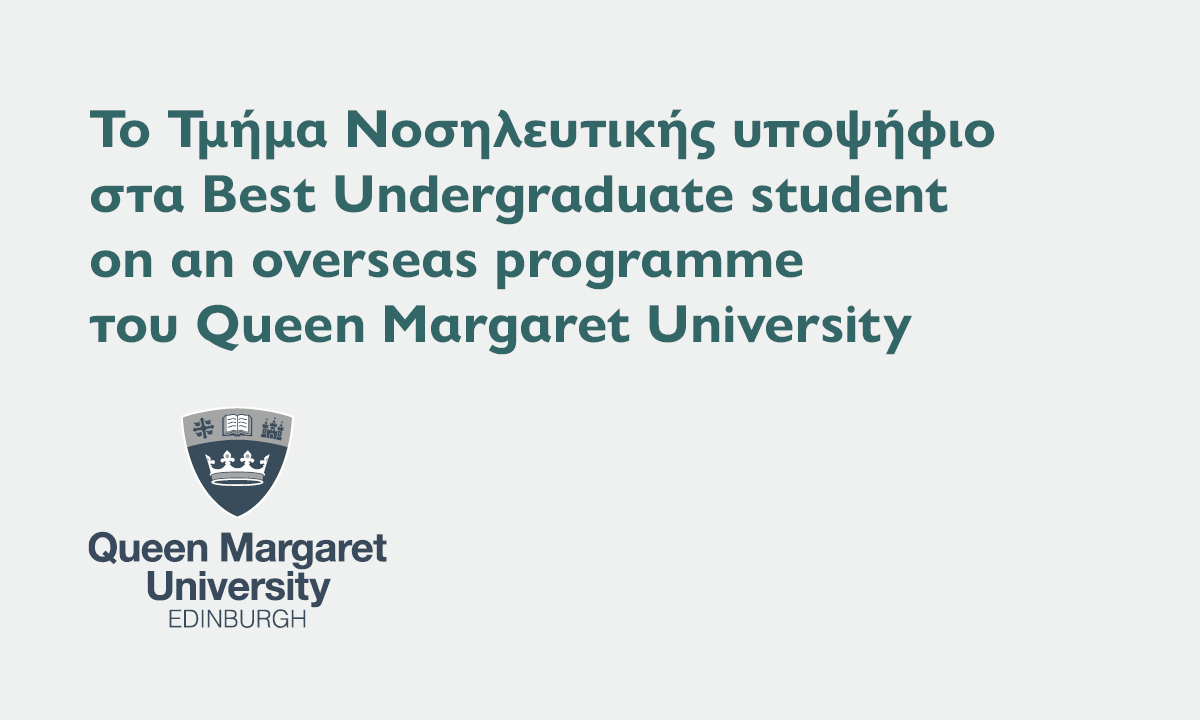 Με γνώμονα την ανάδειξη των άριστων φοιτητών που διαπρέπουν με τις επιδόσεις τους, το Βρετανικό Πανεπιστήμιο Queen Margaret University (QMU), σε συνεργασία με το οποίο το Μητροπολιτικό Κολλέγιο προσφέρει το πρόγραμμα σπουδών Νοσηλευτικής- BSc (Hons) Nursing, διοργανώνει, για ακόμα μια χρονιά, τα Φοιτητικά Βραβεία “Best Undergraduate student on an overseas programme”.