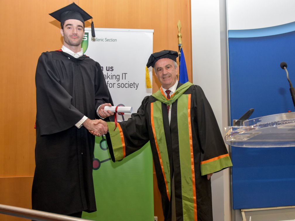 Τα Βραβεία Distinguished IT Graduates Awards απένειμε ο Επίτιμος Καθηγητής Επιστήμης Υπολογιστών στο Οικονομικό Πανεπιστήμιο Αθηνών, και Μέλος του Δ.Σ. του BCS στην Ελλάδα, κ. Εμμανουήλ Γιαννακουδάκης, στο πλαίσιο της εκδήλωσης “BCS Hellenic Digital Excellence” που διοργάνωσε το BCS. Συνολικά βραβεύτηκαν 18 απόφοιτοι πανεπιστημιακών ιδρυμάτων. Έξι από αυτούς ήταν απόφοιτοι της Σχολής Πληροφορικής και αξίζουν ολόθερμα τα συγχαρητήρια μας είναι οι: