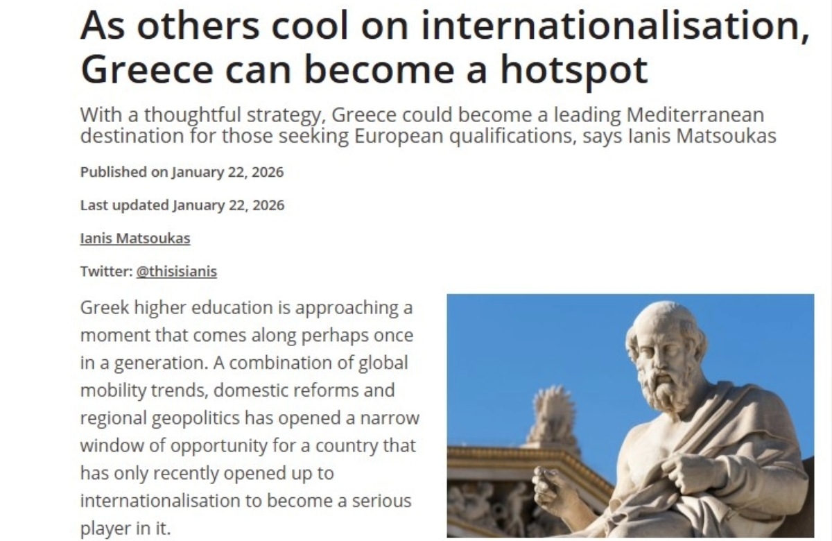 O Dr Ianis Matsoukas γράφει στο Times Higher Education για τον ρόλο της Ελλάδας στη διεθνή εκπαίδευση