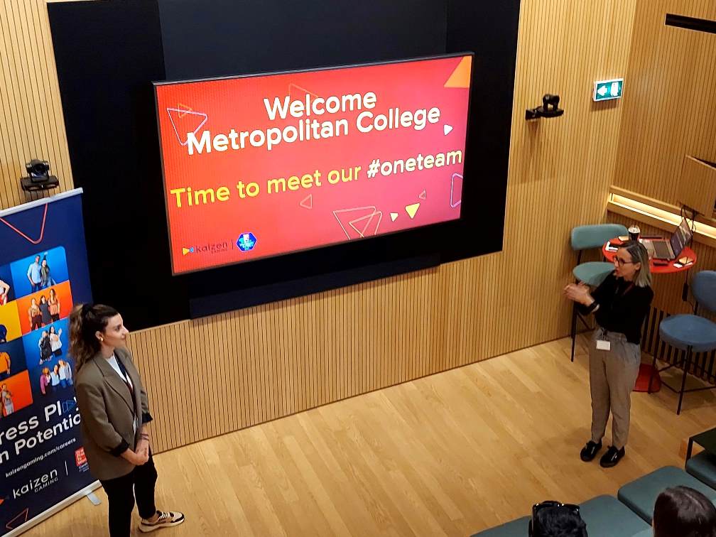 Συγκεκριμένα, 40 φοιτητές από τα προπτυχιακά προγράμματα σπουδών που προσφέρονται από τη Σχολή Διοίκησης του Μητροπολιτικού Κολλεγίου στην Αθήνα, επισκέφθηκαν τις εγκαταστάσεις της εταιρίας Kaizen Gaming, στο Μαρούσι. Στο πλαίσιο αυτό, είχαν την ευκαιρία να περιηγηθούν στo περίφημο Kaizen Campus το οποίο έχει διαμορφωθεί με τέτοιο τρόπο ώστε να είναι σε θέση να ενσωματώσει την περαιτέρω αύξηση του προσωπικού της Kaizen Gaming, που υπολογίζεται στο 20% ετησίως.