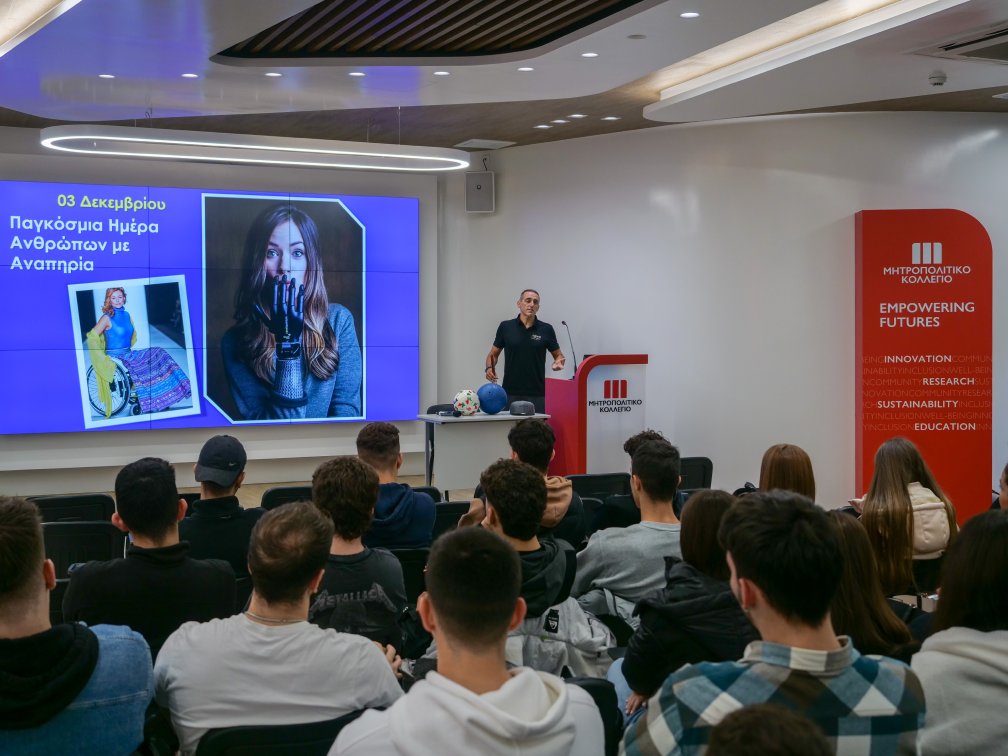 Με αφορμή τη Παγκόσμια Ημέρα Ατόμων με Αναπηρία, το Μητροπολιτικό Κολλέγιο φιλοξένησε τον Αθλητικό Σύλλογο «ΙΩΝΑ» στο Campus Αμαρουσίου. Τους εκπροσώπους του Συλλόγου υποδέχτηκαν μέλη από την ακαδημαϊκή ομάδα του Τμήματος Φυσικοθεραπείας προκειμένου να τους καλωσορίσουν στις εγκαταστάσεις και να τους συστήσουν στους φοιτητές του Τμήματος.