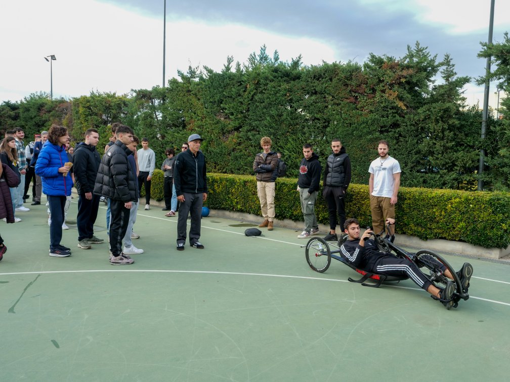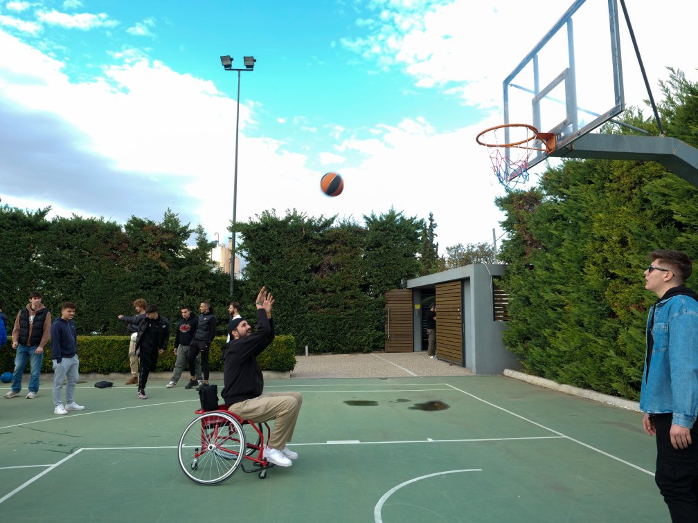 Την εμπνευσμένη ομιλία διαδέχτηκε το διαδραστικό κομμάτι της δράσης που δεν ήταν άλλο από την παρουσίαση των αθλημάτων της ποδηλασίας, του στίβου, του μπάσκετ και του goalball (άθλημα για άτομα με προβλήματα όρασης). Ακολούθησε επίδειξη του προσαρμοσμένου αθλητικού εξοπλισμού στο γήπεδο μπάσκετ του Campus Αμαρουσίου, από τους αθλητές του συλλόγου όπου οι φοιτητές είχαν την ευκαιρία να γνωρίσουν από κοντά τις ιδιαιτερότητες και τεχνικές απαιτήσεις αυτών των αθλημάτων και, φυσικά, να δοκιμάσουν και οι ίδιοι να χειριστούν χειροποδήλατα και αναπηρικά αμαξίδια για μπάσκετ. Η δράση ολοκληρώθηκε με συζήτηση, στη διάρκεια της οποίας, φοιτητές και αθλητές είχαν το πεδίο να συνομιλήσουν, να αλληλεπιδράσουν, να ανταλλάξουν εμπειρίες και απόψεις.