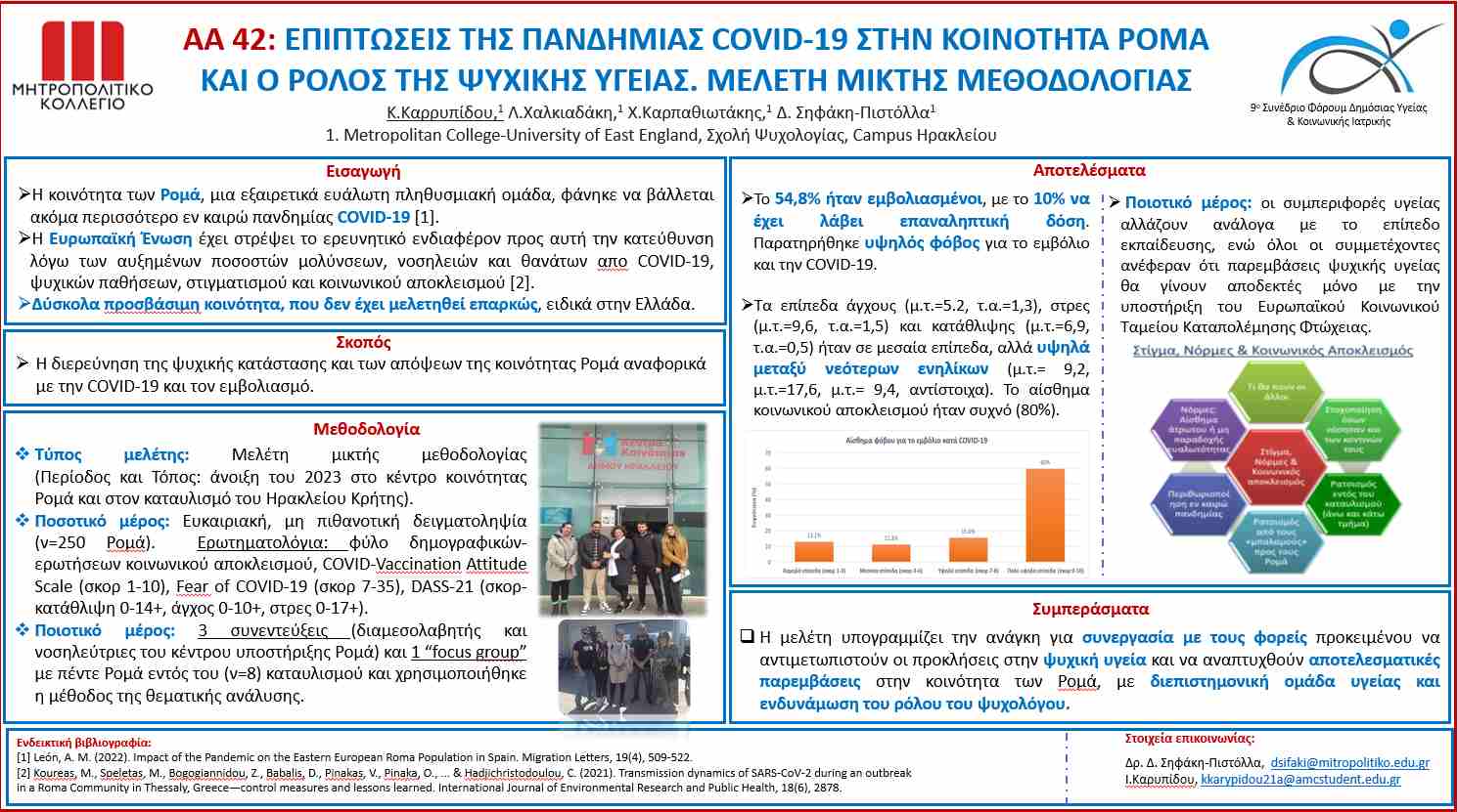 1) «Επιπτώσεις της Πανδημίας COVID-19 στην κοινότητα Ρομά και ο ρόλος της ψυχικής υγείας. Μελέτη μικτής μεθοδολογίας».