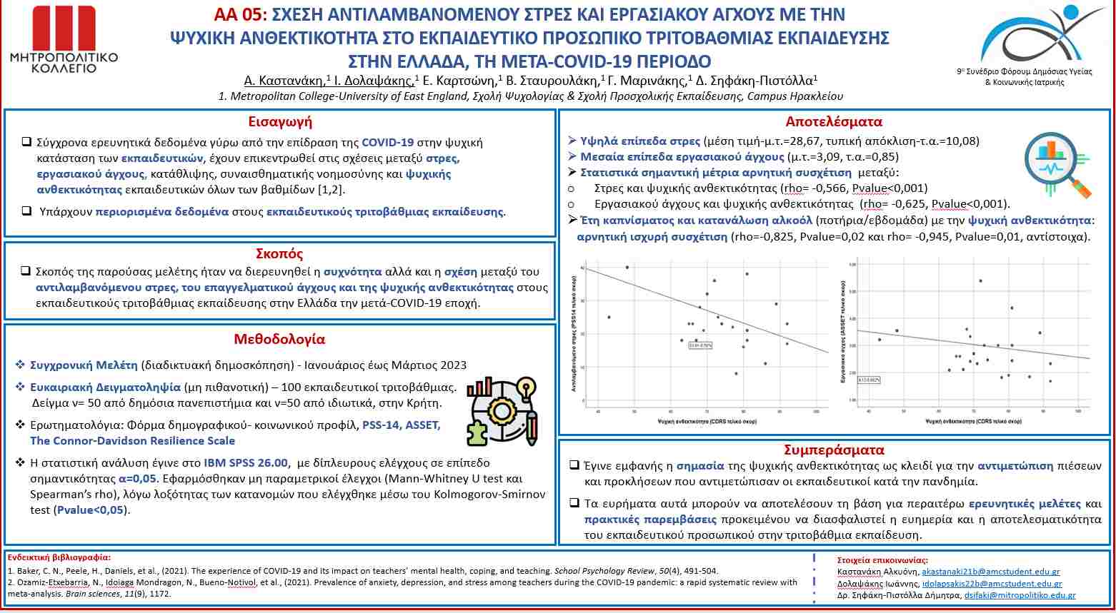 3) «Σχέση αντιλαμβανόμενου στρες και εργασιακού άγχους με την ψυχική ανθεκτικότητα στο εκπαιδευτικό προσωπικό τριτοβάθμιας εκπαίδευσης στην Ελλάδα, τη μετα-COVID-19 περίοδο».
