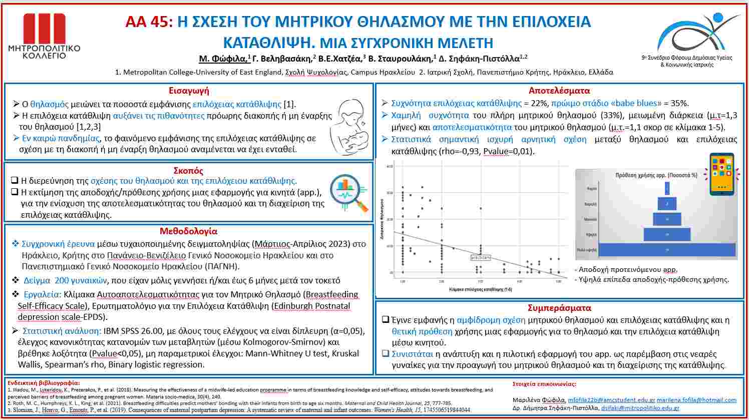 2) «Η σχέση του μητρικού θηλασμού με την επιλόχεια κατάθλιψη. Μια συγχρονική μελέτη».