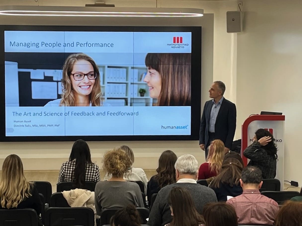 Το σεμινάριο με τίτλο «The art & science of feedback and feedforward» παρουσίασε ο κ. Δημήτρης Τόλης, CEO της Human Asset Ελλάδος, Senior Trainer & Executive Coach, εστιάζοντας και αναλύοντας την κουλτούρα της ανατροφοδότησης από τους προϊσταμένους των τμημάτων προς τους υφισταμένους τους.