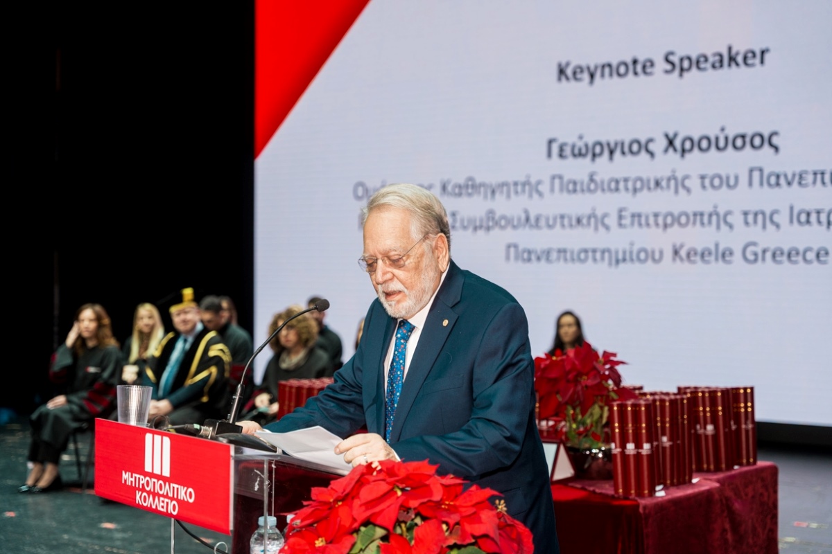 «Είναι για μένα ιδιαίτερη τιμή και χαρά να βρίσκομαι σήμερα μαζί σας σε αυτήν τη γιορτινή και τόσο ουσιαστική στιγμή. Η αποφοίτηση δεν είναι ένα τέλος· είναι ένα πέρασμα. Ένα κατώφλι ανάμεσα σε έναν κόσμο όπου πολλά ήταν ήδη δομημένα για εσάς και σε έναν κόσμο όπου, όλο και περισσότερο, εσείς θα σχεδιάζετε τη ζωή σας. Δεν θα επιλέγετε μόνο τι θα κάνετε, αλλά πώς θα ζήσετε· όχι μόνο τι θα επιδιώξετε, αλλά και τι αξίζει πραγματικά να επιδιώκεται. Γι’ αυτό σήμερα δεν θα ήθελα να σας μιλήσω για καριέρες, ανταγωνισμό ή επιτυχία — αυτά θα τα ακούσετε συχνά. Θα ήθελα να σας μιλήσω για κάτι βαθύτερο και παλαιότερο: Πώς να ζήσετε καλά.
