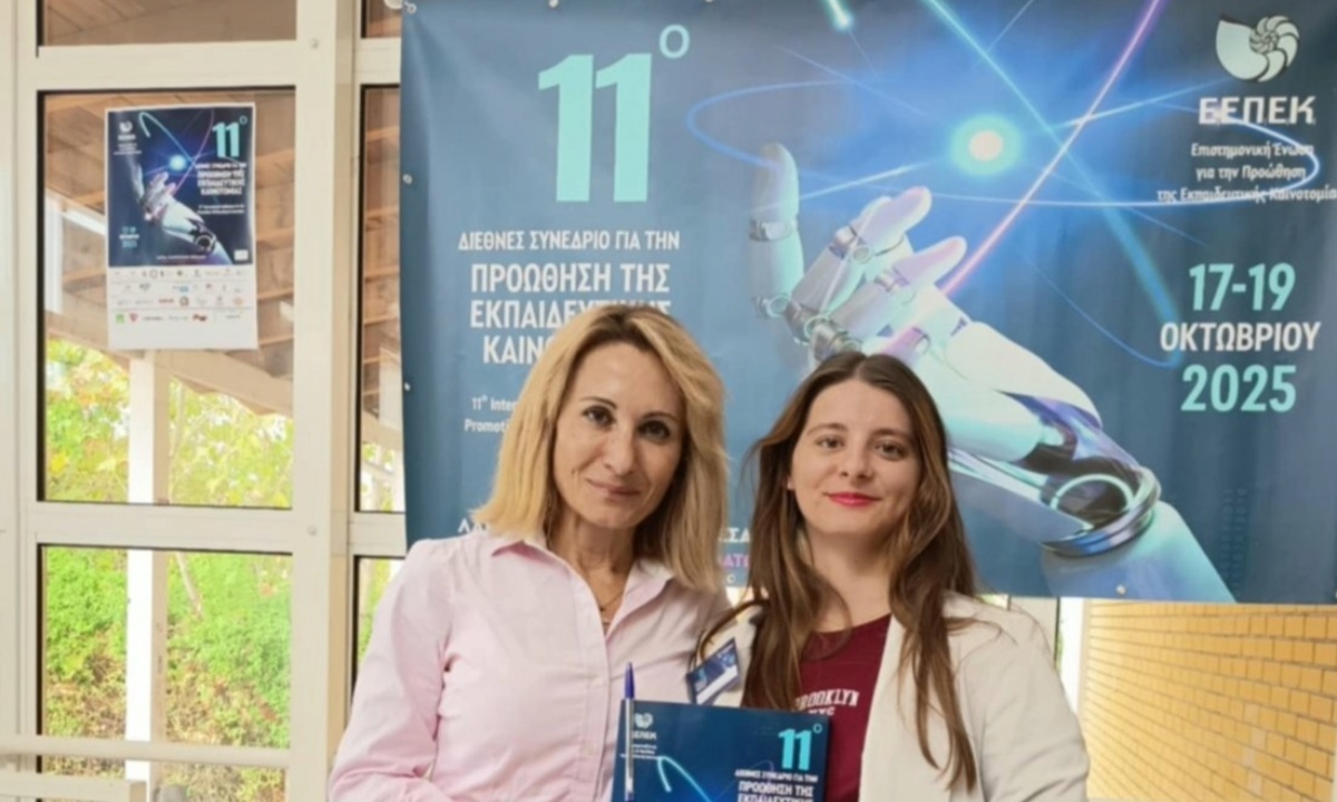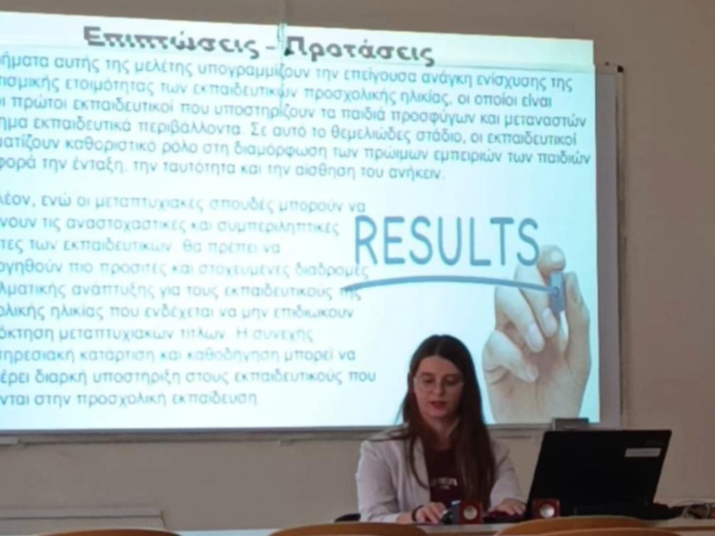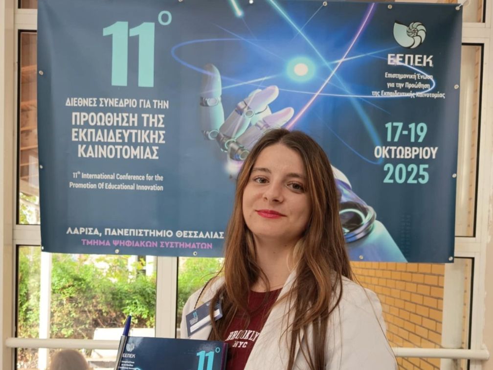 Η πρώτη με τίτλο “Computational Thinking and Bullying Prevention in the Preschool Using AI Tools”, εστίασε στη χρήση εργαλείων τεχνητής νοημοσύνης για την καλλιέργεια υπολογιστικής σκέψης και την πρόληψη του σχολικού εκφοβισμού στην προσχολική ηλικία. Η δεύτερη εισήγηση, με τίτλο “Perceptions of Pre-School Teachers about Refugee Education: The Role of Professional Background and Personal Exposure to Cultural Diversity”, παρουσιάστηκε σε συνεργασία με την κα Βασιλική Πασχαλούση, απόφοιτη του προγράμματος σπουδών στην Προσχολική Αγωγή, η οποία συνεχίζει τις σπουδές της στο μεταπτυχιακό στην Ψυχολογία Παιδιών εφαρμοσμένη σε Εκπαιδευτικό Πλαίσιο, ΜΑ Child Psychology for Education, του Μητροπολιτικού Κολλεγίου.